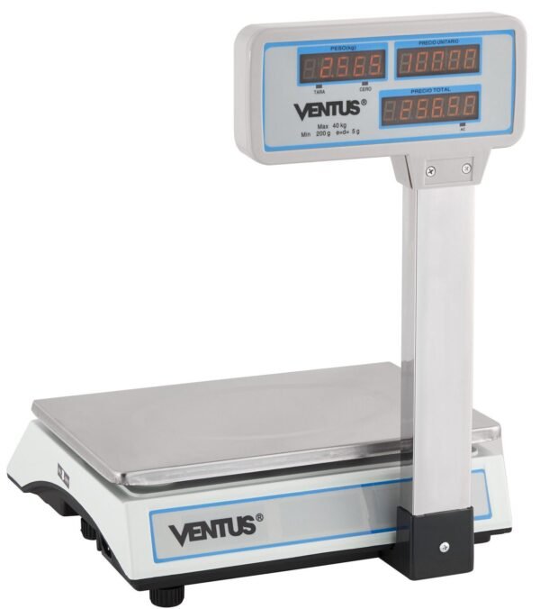 La Balanza Digital 40 Kilos con Visor B40VA de VENTUS es la herramienta perfecta para comercios que requieren precisión, portabilidad y visibilidad clara al momento de pesar productos.