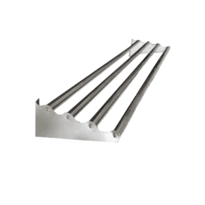 Incorpora 4 barras longitudinales de acero inoxidable que permiten deslizar bandejas o sostener elementos, facilitando la operación diaria y el acceso a utensilios o productos.