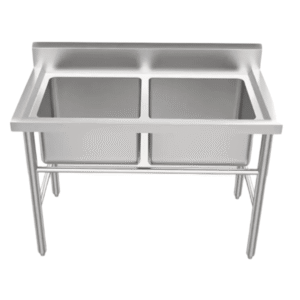 El Lavafondo de 2 Tazas 120 cm es una opción ideal para cocinas industriales y comerciales que requieren un área de lavado eficiente y resistente.