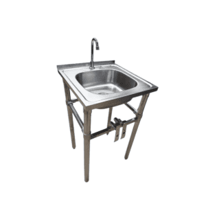 Fabricado en acero inoxidable, incluye grifería completa, desagüe eficiente y estructura estable.