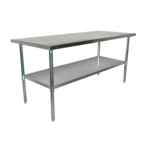 - Materiales: Acero inoxidable en la cubierta, patas y repisa inferior de acero galvanizado.
