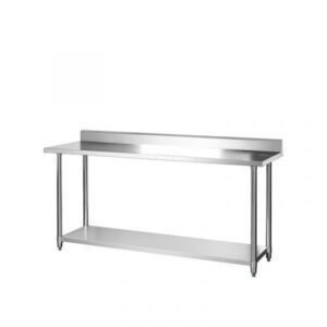 Mesón Mural 180 cm WT-1800E, con cubierta en acero inoxidable 430 de 1,2 mm y refuerzo interno perfilado.