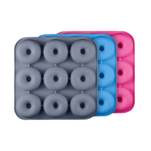 Con un diseño moderno y alegre en color rosa, este molde tiene capacidad para 9 donuts y unas dimensiones compactas de 28 x 28 x 3 cm, lo que lo hace fácil de almacenar y manejar incluso en cocinas pequeñas.