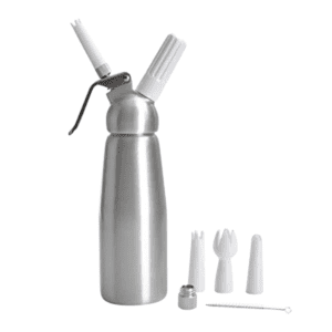 Este dispensador profesional permite batir crema al instante y crear espumas ligeras y estables, ideales para decorar postres, cafés, chocolates calientes, pasteles y platos gourmet.