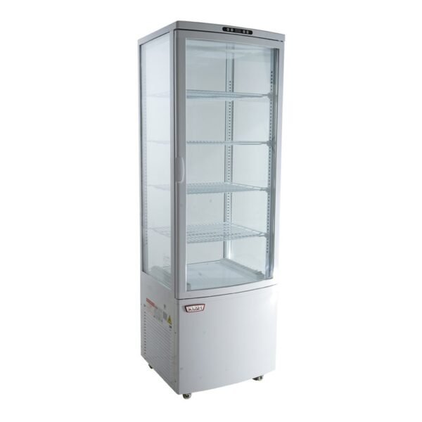 La Vitrina Vertical Blanco 288 Litros MAIGAS está diseñada para ofrecer una exhibición atractiva y conservación eficiente de productos de pastelería y repostería.